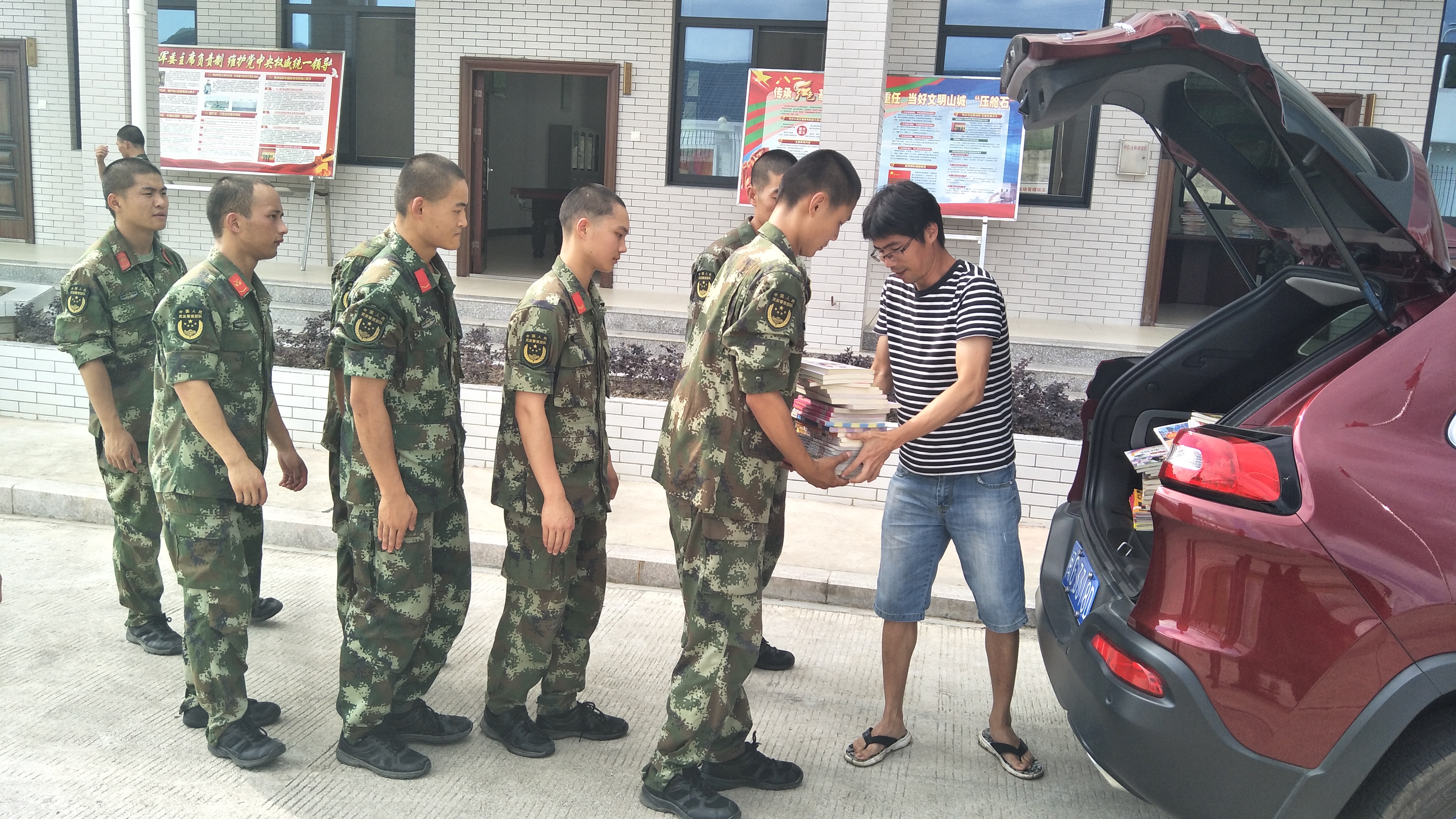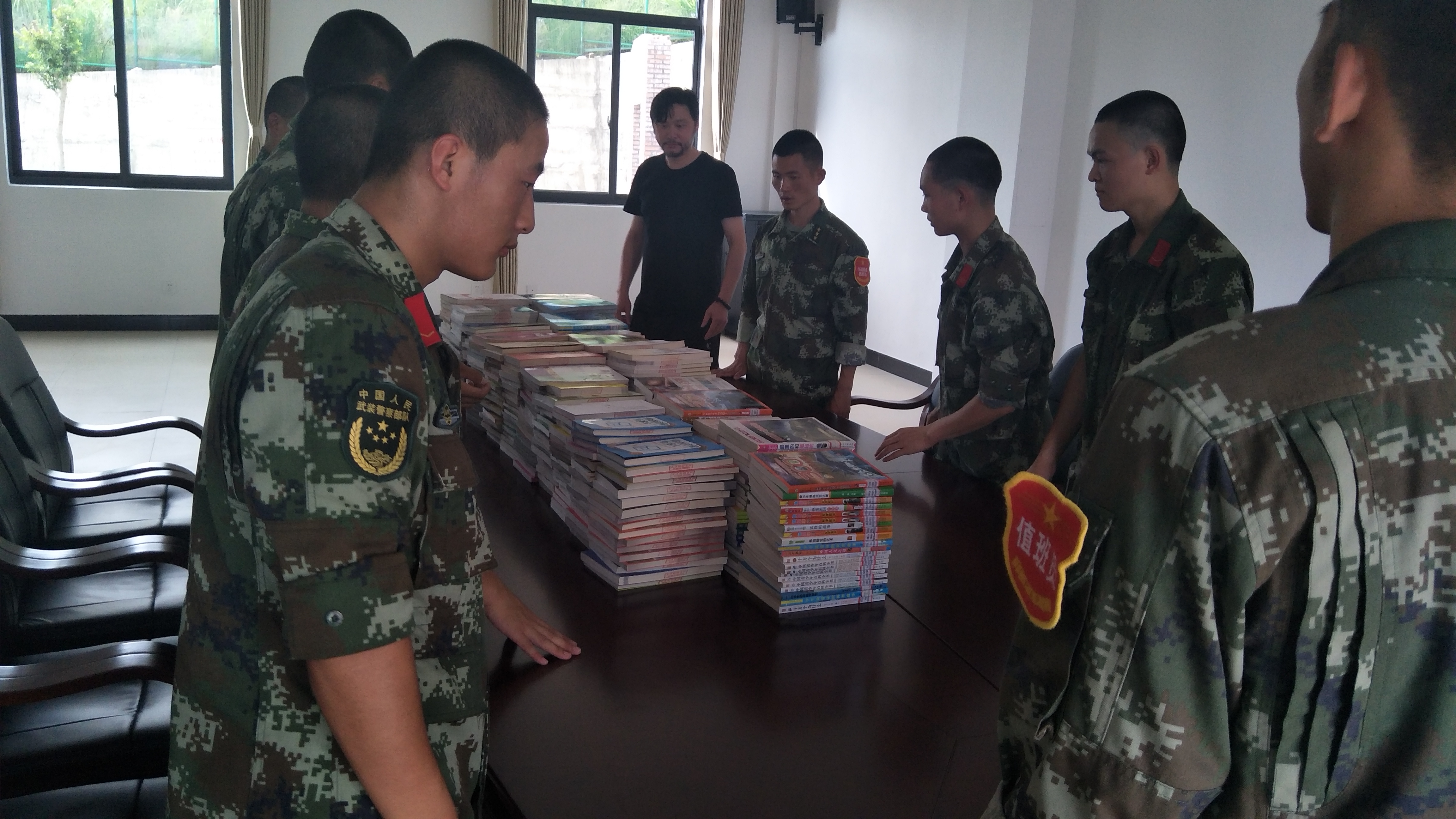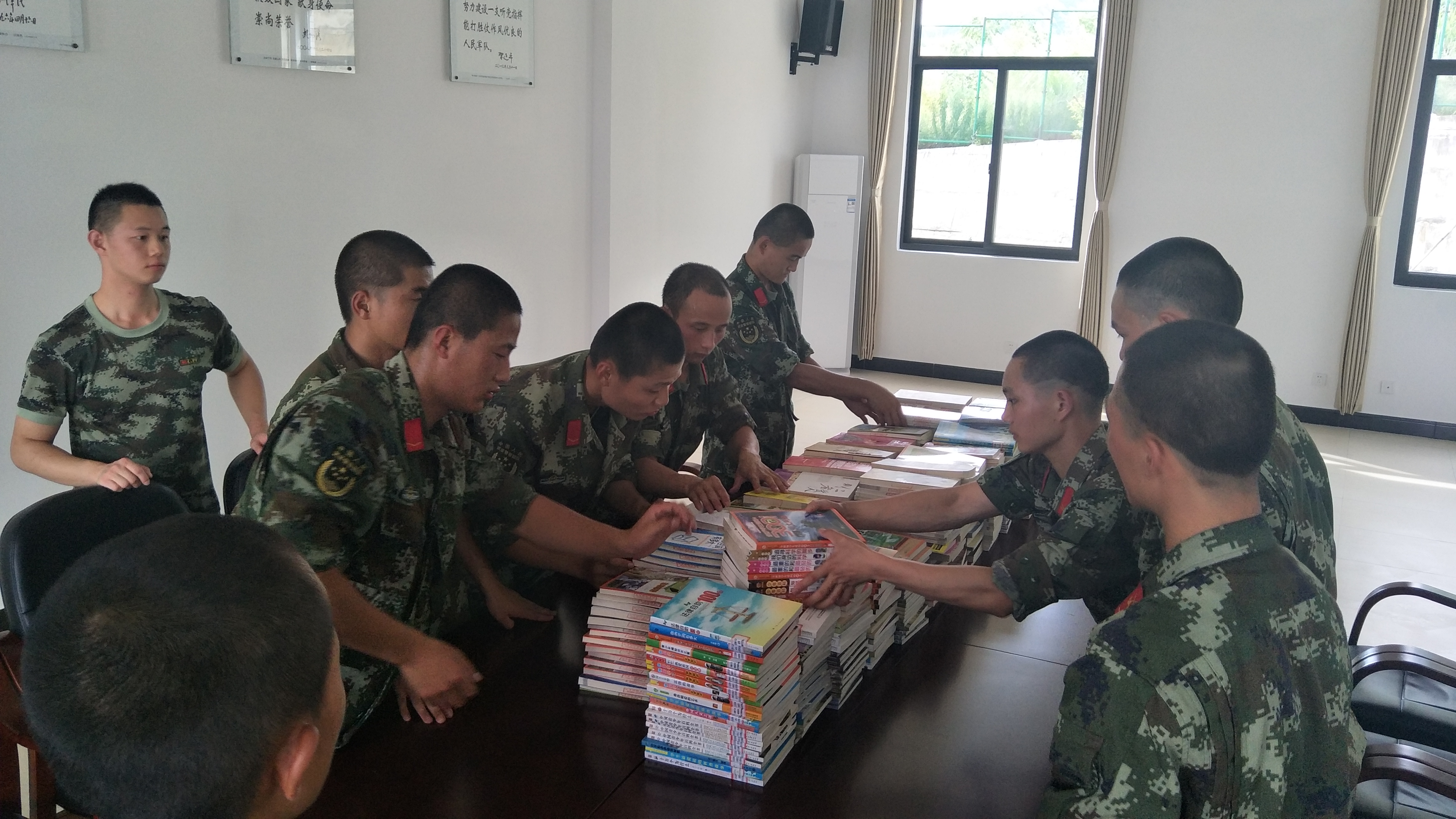 6月25日我县图书馆与驻地武警部队开展共建活动,支持部队图书室建设,是县图书馆长期以来坚持的重要工作,目前已经在县消防队,武警中队建立2个图书流动服务点,深受部队干部战士的欢迎。